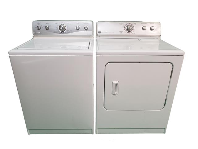Maytag centennial washer and dryer set with chrome console. This is an excellent washer and dryer pair with some commercial parts. The washer is a large capacity and the dryer can handle any thing you throw at it. Sargent’s has thoroughly rebuilt the washer and dryer and both have received many new parts. This washer dryer pair has a 1 year warranty. $550.