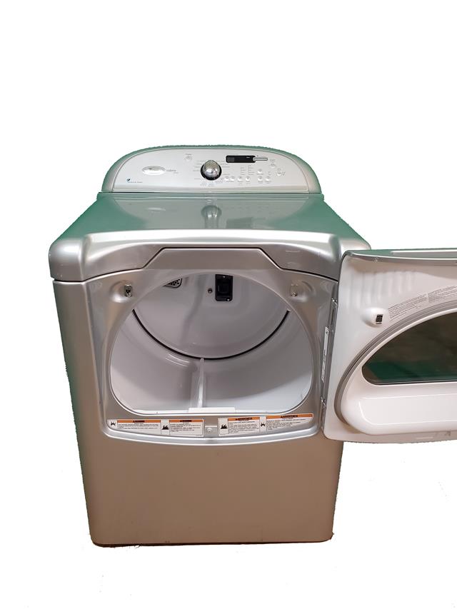 Whirlpool Oasis dryer, Chrome (not green, it’s from our green screen), with extra large capacity. This Whirlpool dryer is top of the line and has a steam drying function. This dryer has all the features you ever would need, and been thoroughly rebuilt by our professional staff. Dryers receive new belts and any other parts that appear to be worn. $350, 1 year warranty.