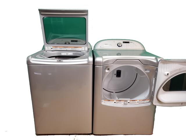 Whirlpool cabrio washer and dryer pair with deep, extra large capacity washer. This is an extra large washer and dryer that have the drum size to hold very large loads. The washer measures in at 4.5 cubic foot, and the dryer at 7.3 cubic foot. The dryer has a steam drying function that will help keep out wrinkles. The washer spins very fast, to help get rid of excess water in your clothes, so your dry times are faster. The washer has received a new bearing and seal. $750, 1 year warranty.