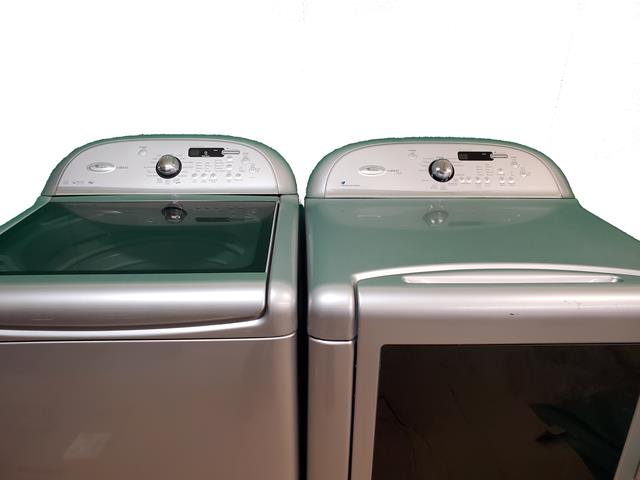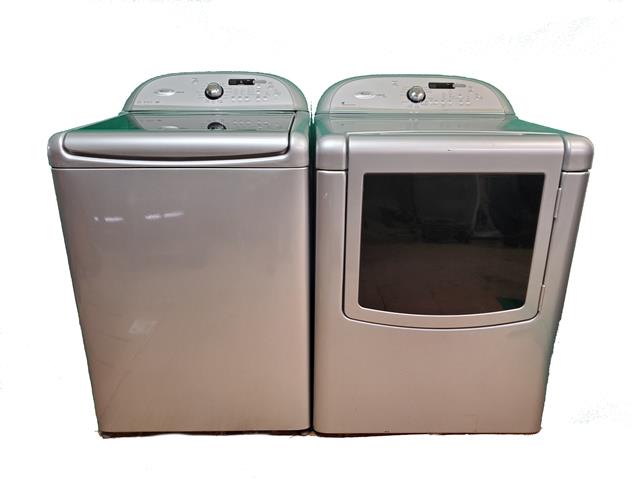 Whirlpool cabrio washer and dryer pair with deep, extra large capacity washer. This is an extra large washer and dryer that have the drum size to hold very large loads. The washer measures in at 4.5 cubic foot, and the dryer at 7.3 cubic foot. The dryer has a steam drying function that will help keep out wrinkles. The washer spins very fast, to help get rid of excess water in your clothes, so your dry times are faster. The washer has received a new bearing and seal. $750, 1 year warranty.