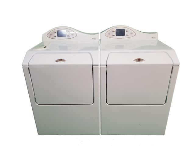 Maytag Neptune washer and dryer pair with large capacity, front loading washer. This is a great, commercial washer dryer set that has been thoroughly rebuilt. Both washer and dryer have a touch control panel with a lot of cycle options. The washer has a new bearing and seal, as well as a new belt. The dryer has received the treatment and has been completely rebuilt. The washer touts a very fast spin speed that will wring your clothes drier, so they don’t dry as long in the dryer. $750, 1 year warranty.
