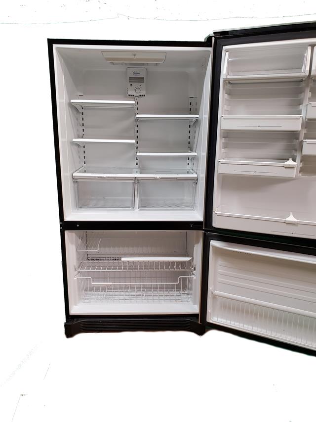 Amana bottom freezer with counter depth cabinet. Counter depth is a style of refrigerator that allows your refrigerator to fit into a small cabinet space, where other refrigerators would stick out. This refrigerator received a new compressor, and looks brand new on the inside; when our cleaner cleaned it, she removed all the packing tape from when it was new. This Amana refrigerator also has glass, spill proof shelves and tons of door storage space. $650 1 year warranty.