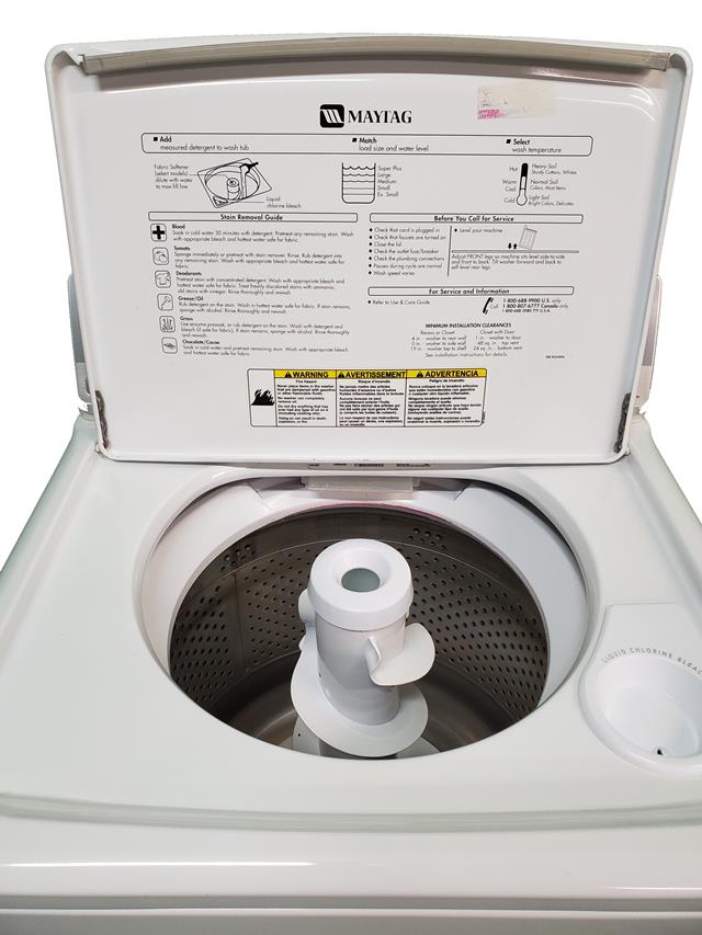 Maytag centennial washer with steel drum and 2 piece agitator. Maytag has done a great job with this washer with using the direct drive design that has been around for decades. Sargent’s has thoroughly rebuilt and cleaned this washer. This machine is commercial quality, and does not have a locking lid. Enjoy a great machine. $299, 1 year warranty.